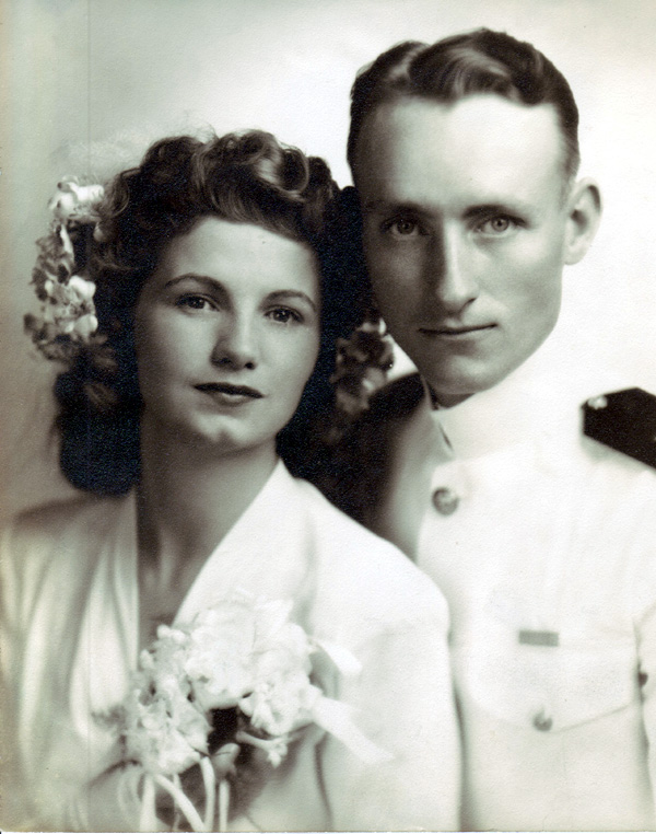 Above, Naval Academy graduation. Below, Bill and Mildred's wedding portrait (July 10, 1943).