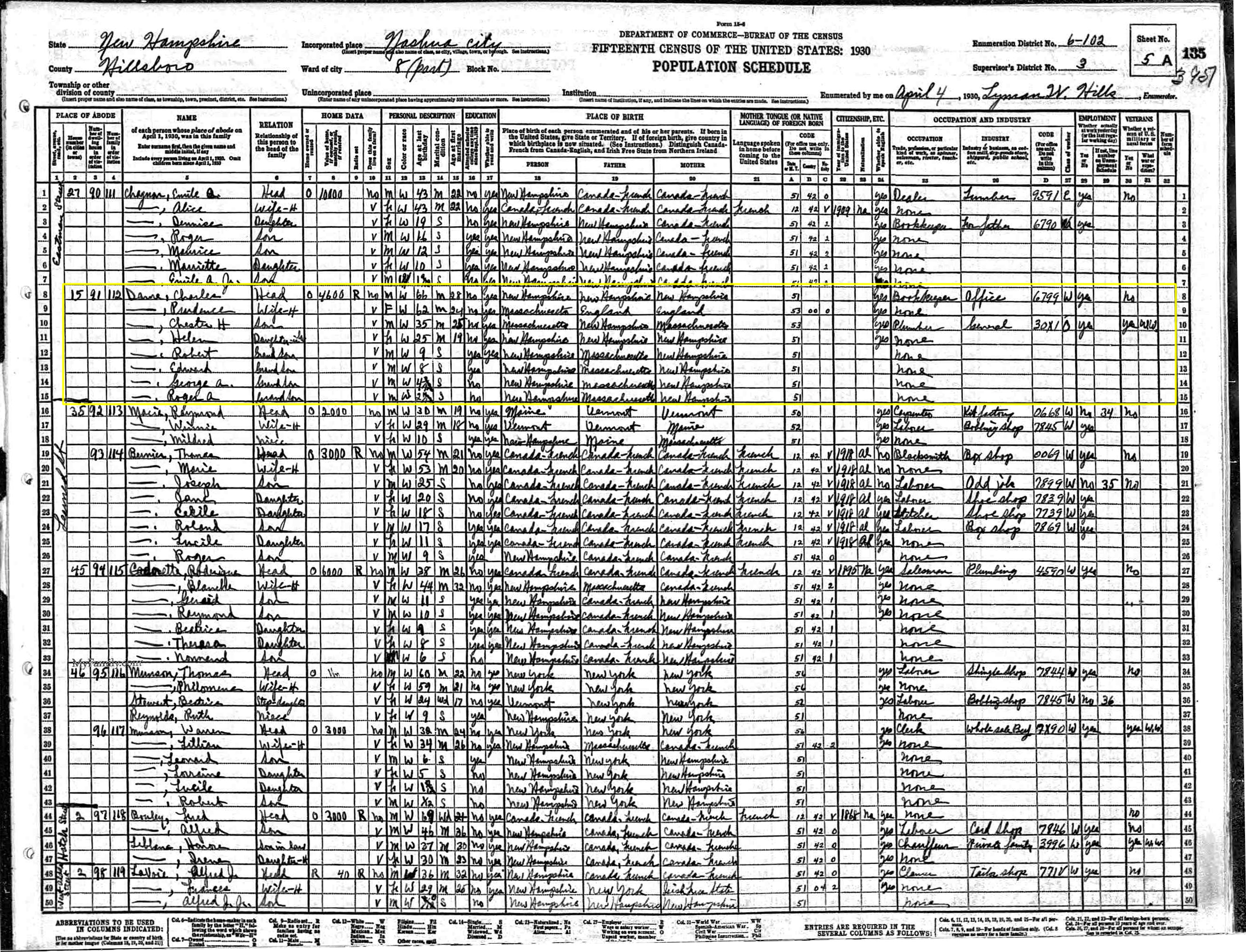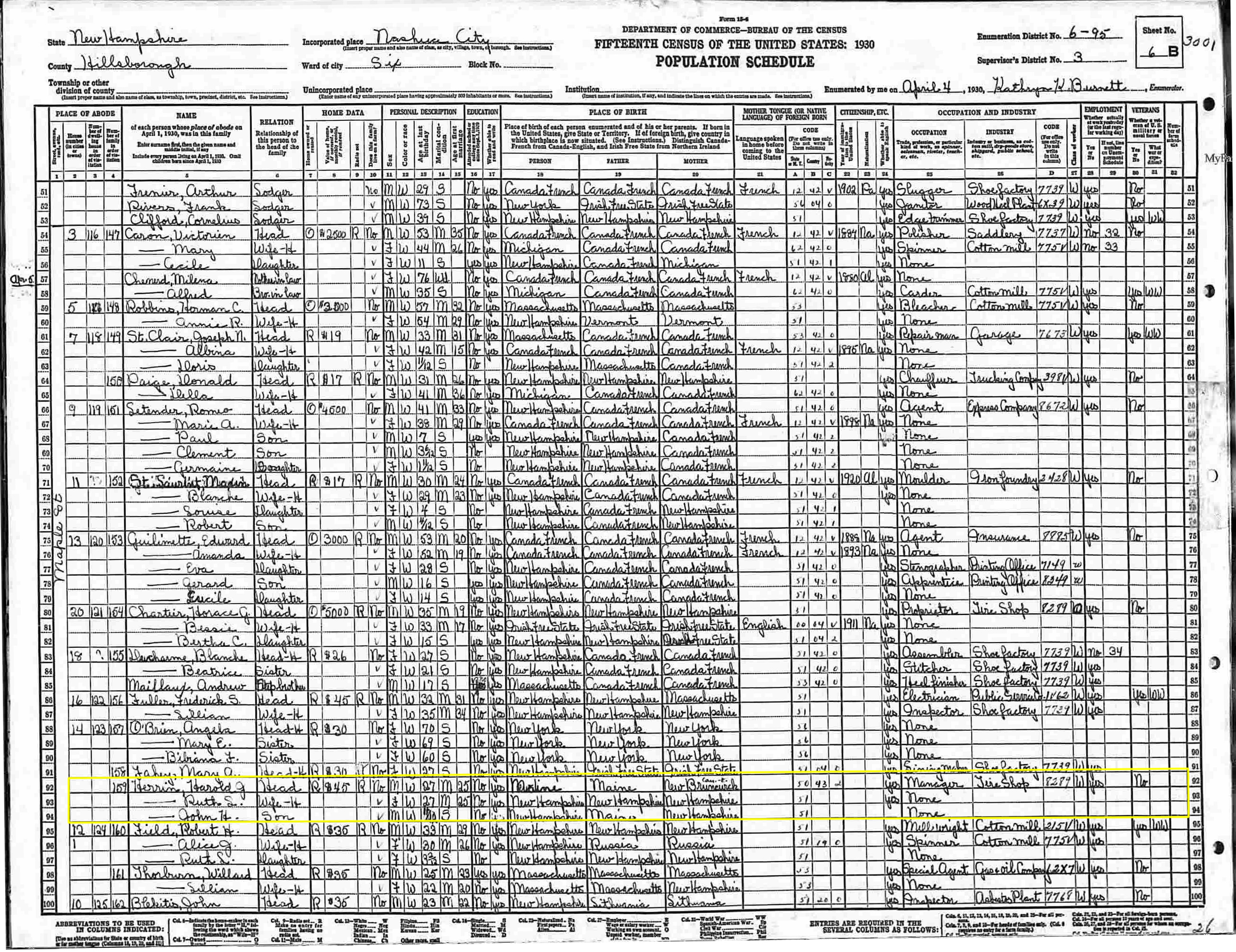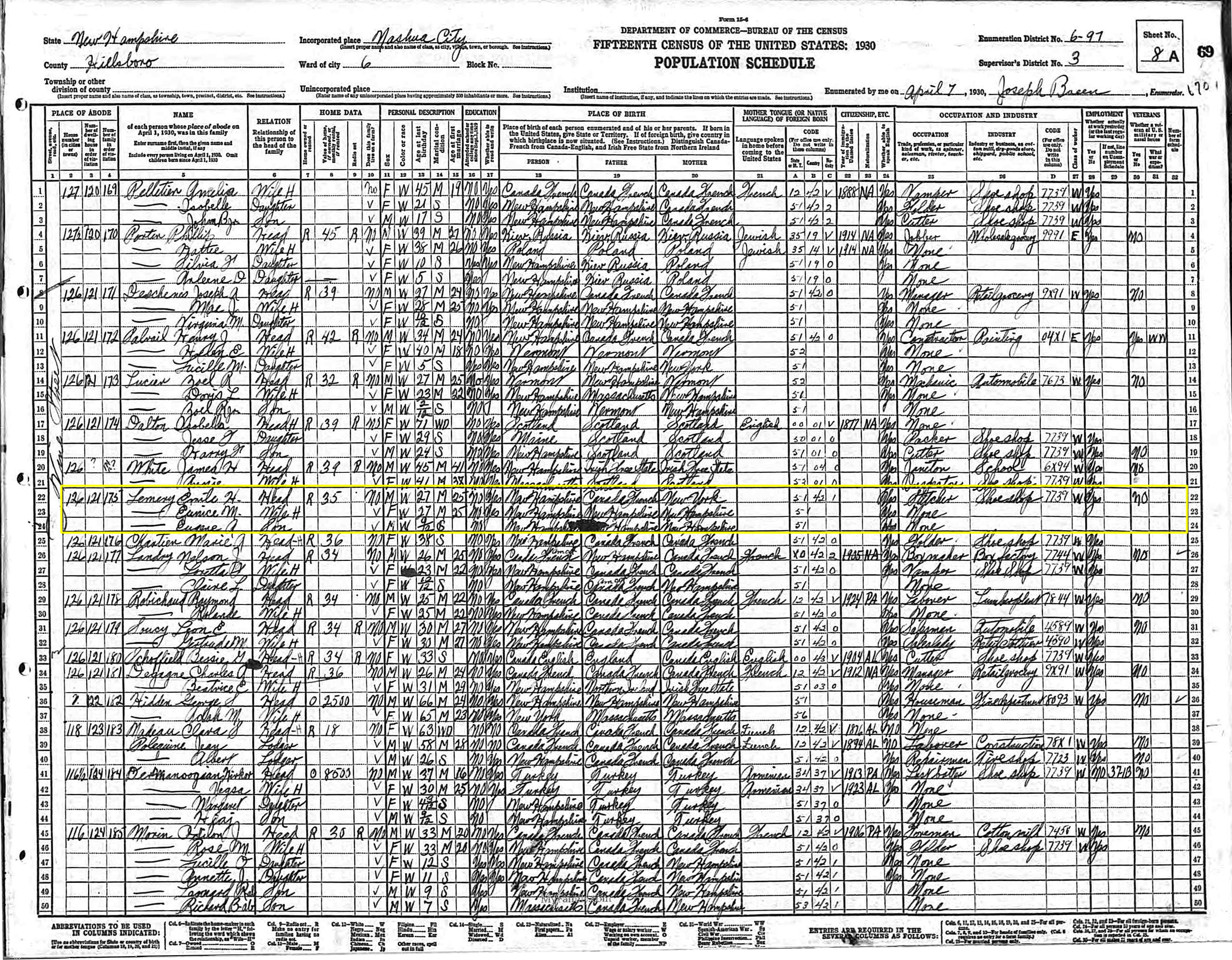 Eunice Riley and Emile Lemery Family1930 U.S. Census: New Hampshire - Hillsborough - Nashua - District 97 (See full size >>)Address: 126 Vine St., Nashua NH |