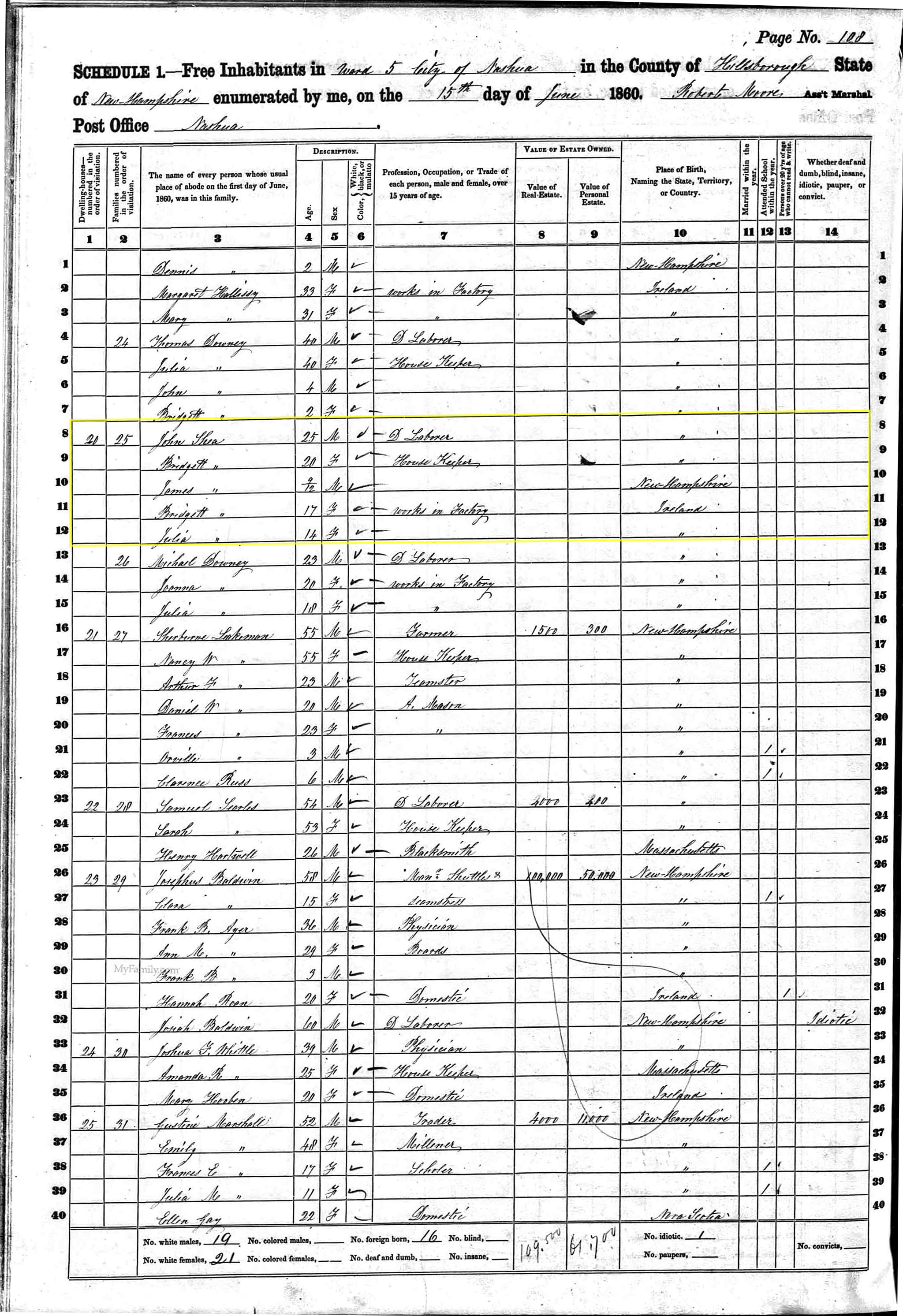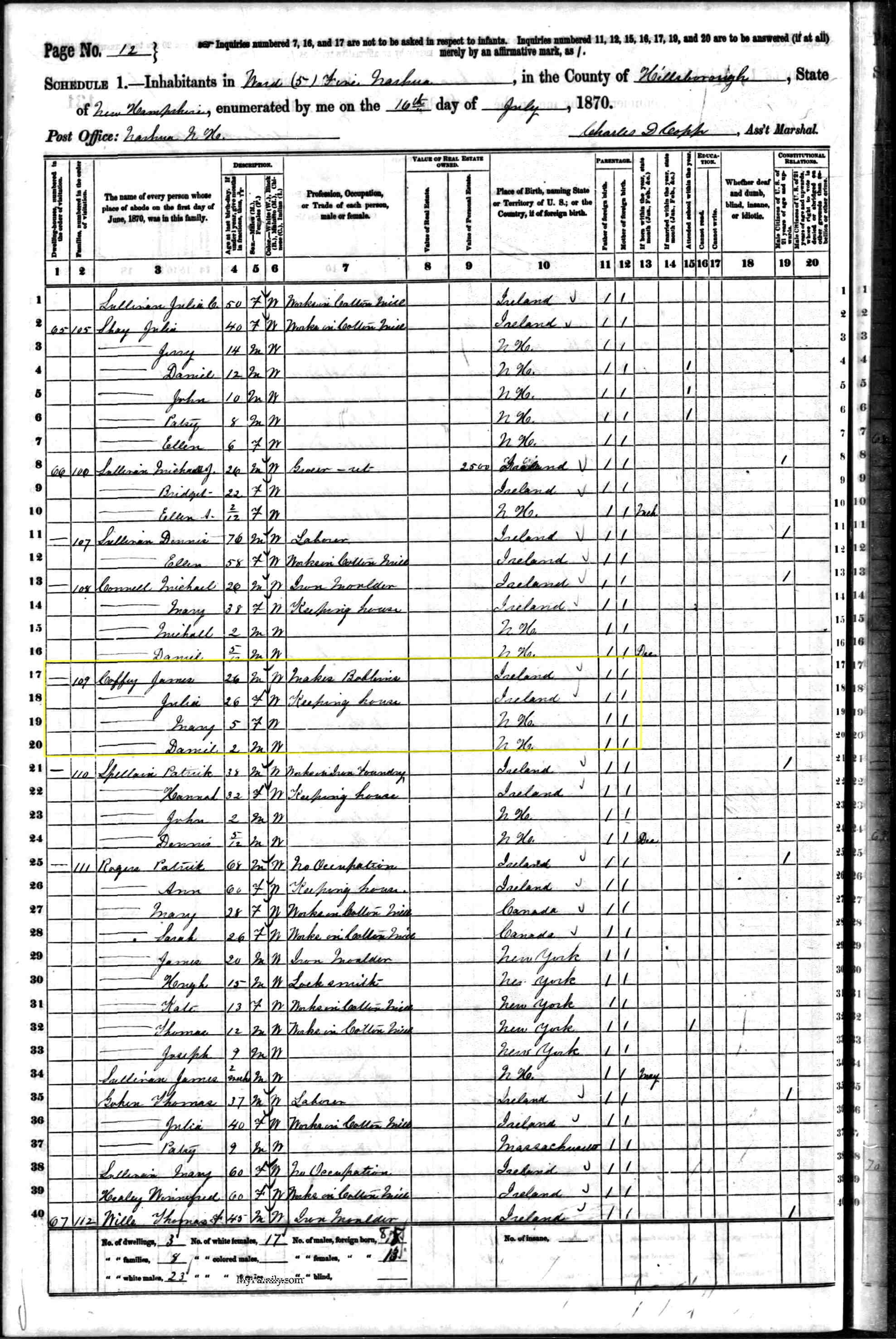 1870 U.S. Census: New Hampshire - Hillsborough - Nashua - Ward 5 (See full size >>)