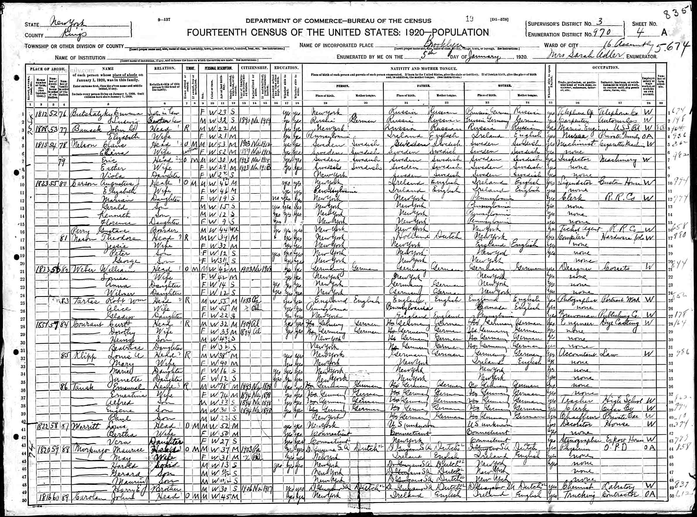 - Residence: 1074 71st St. Brooklyn N.Y.